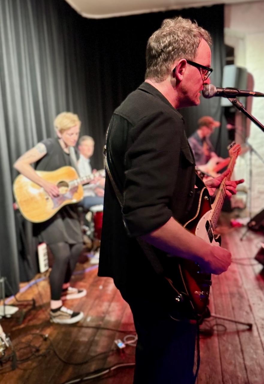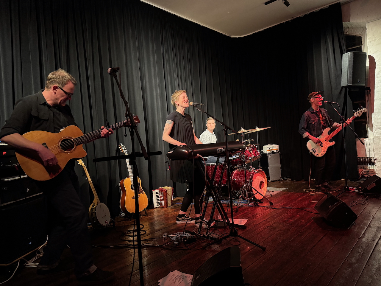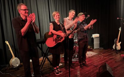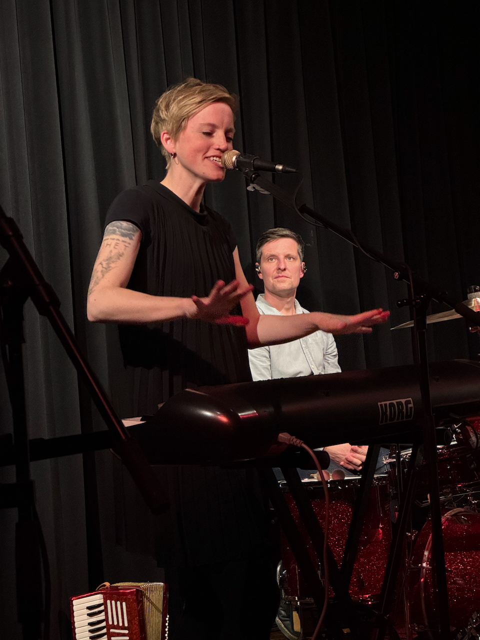 In der ausverkauften Bandfabrik gab es eine Auswahl von Stücken aus dem aktuellen Album HELLO HELLO, aber auch neue, bisher unveröffentlichte Stücke, die neugierig auf das nächste Album machen. Für jedes Stück gab es eine launige Anmoderation, die es dem Publikum leicht machte, mitzufühlen, mitzusingen, perkussiv mitzuklatschen oder mindestens mitzuschnippen.