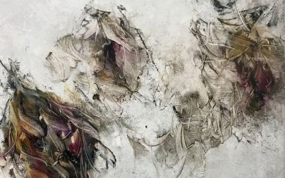 Frank Hinrichs erklärt, dass Denken und Schaffen bei ihm parallel ablaufen und nicht voneinander zu trennen sind. Er beschreibt seine Arbeit als ein „Fluidum“ oder „Klima“, das von vielen Einflüssen (Technik, Philosophie, Musik, Alltag) gespeist wird. Für ihn ist Kunst weniger zielorientiert, in einem Werk festgeschrieben, sondern ein fortlaufender Prozess, in dem das Werk nur eine Momentaufnahme oder Notation ist – keine abgeschlossene Einheit. Entscheidend sei nicht das Ergebnis, sondern der Weg und die ständige Selbstbefragung im Tun. Er betont die Verbindung von Intuition und Denken, die sich im Schaffensprozess durchdringen. Dabei sieht er auch andere Kunstformen wie Musik als Inspirationsquelle, die ihn emotional wie intellektuell prägen. Kunst sei letztlich der Versuch, das Unfassbare greifbar zu machen – und genau das sei ihr Reiz und ihr Antrieb.