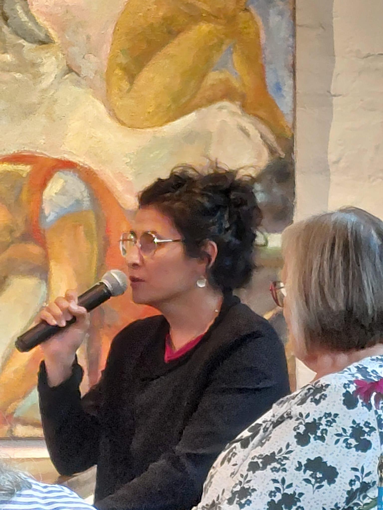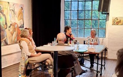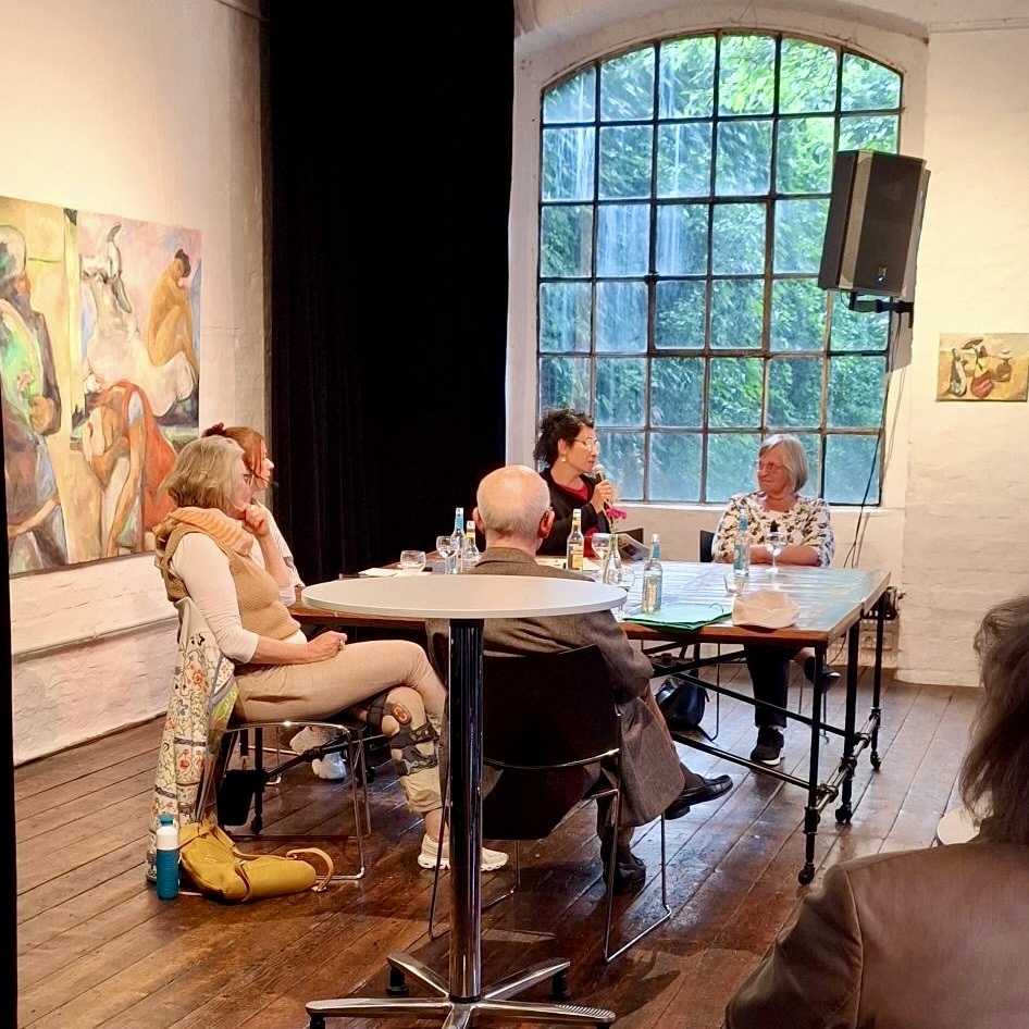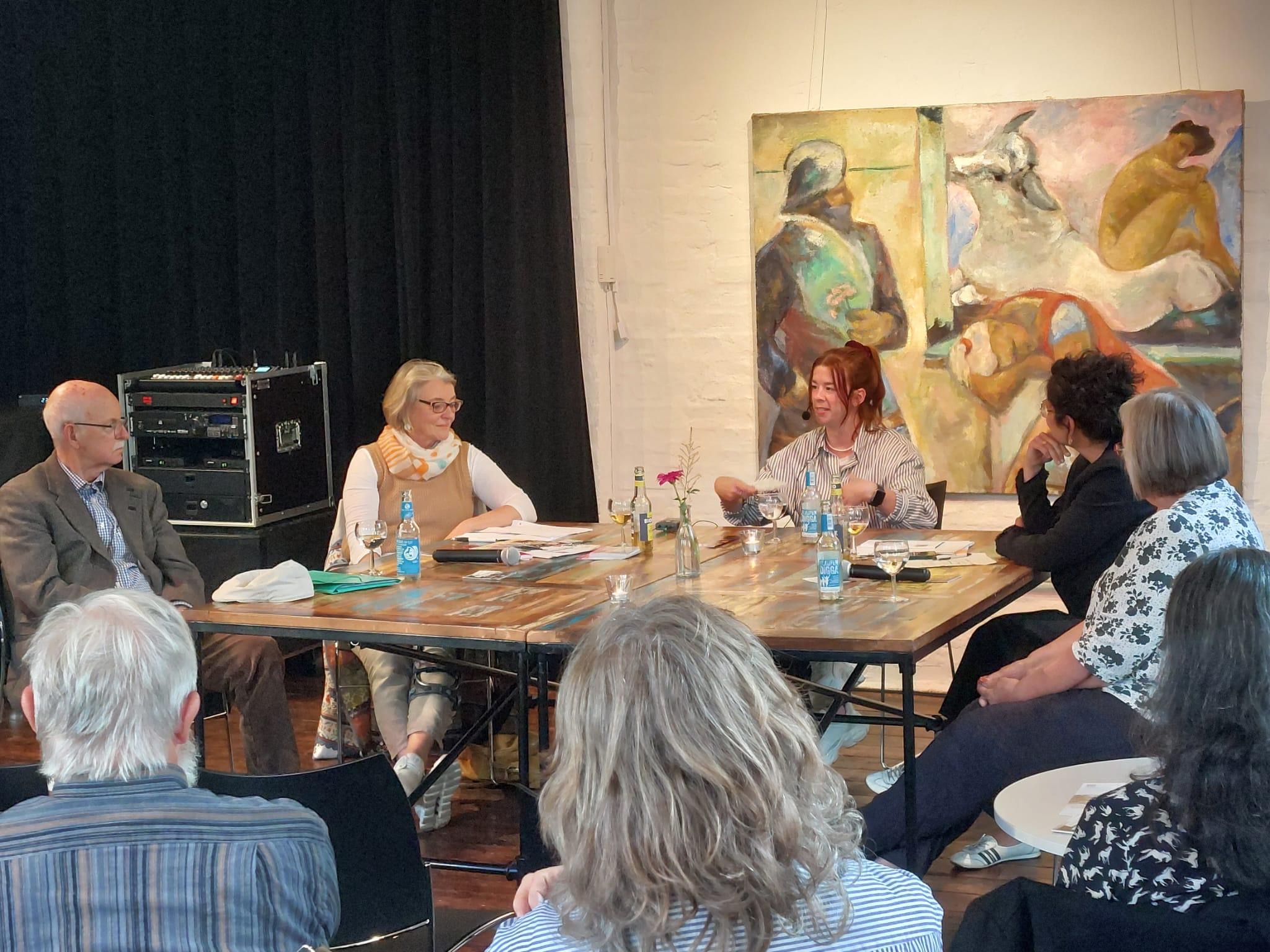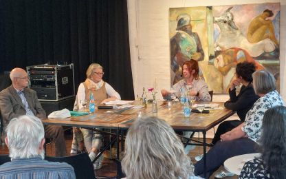Geladene Gäste: Arlin Cakal-Rasch, Fachbereichsleiterin Zentrum für Integration, Bildung und kulturelle Vielfalt in Wuppertal; Margret Hahn, ehemalige Vorsitzende des Langerfelder Bürgervereins; Eberhard Hasenclever, Kommunalpolitiker und Zeitzeuge der Langerfelder Entwicklungen seit dem Nationalsozialismus; Petra Wlecklik, ehemals IG Metall-Sekretärin (integrative Nachbarschaftsarbeit, Wichlinghausen).