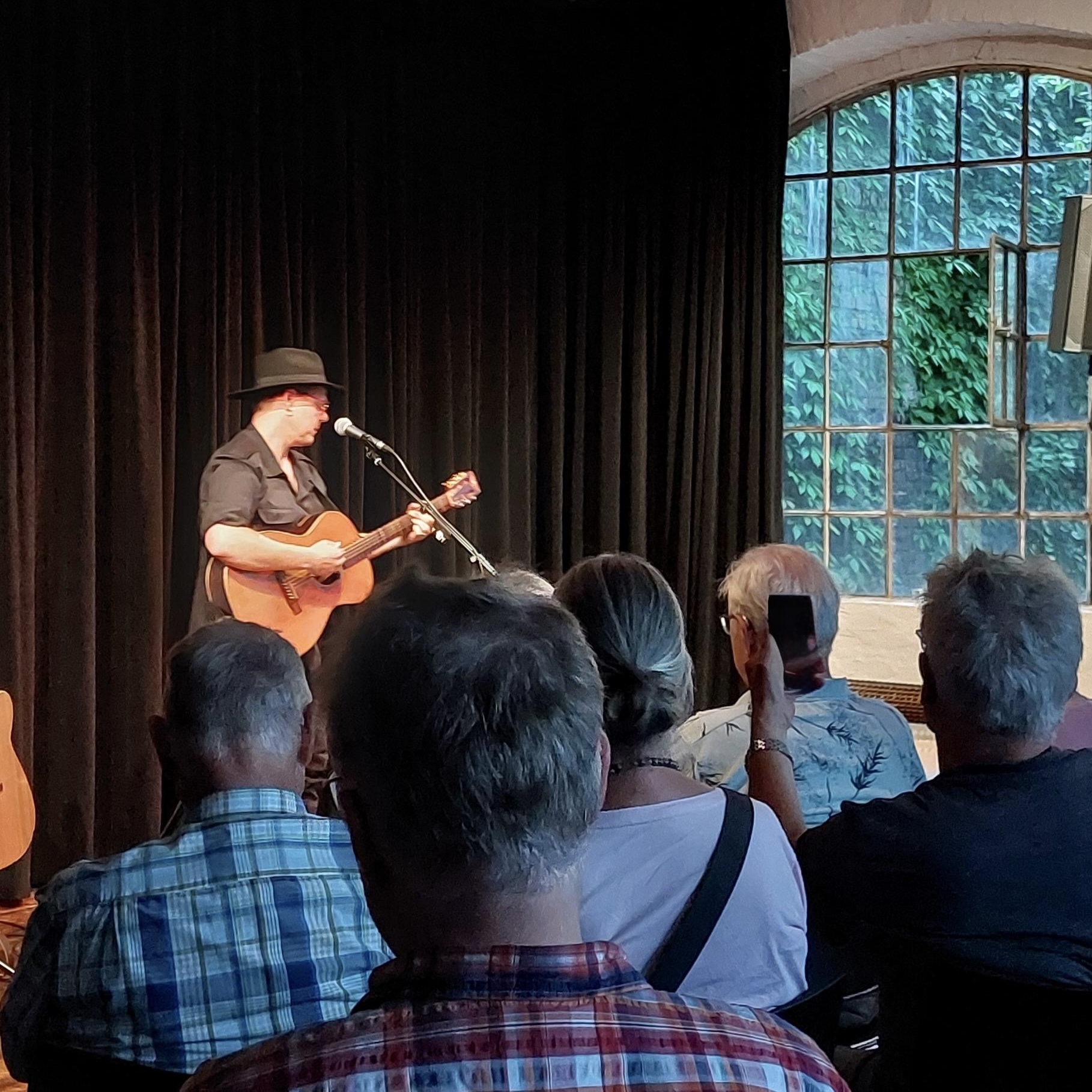 Mit seinem Programm „Lieder und Geschichten, die das Leben schreibt“ hat er das Publikum in der Bandfabrik auf charmante Art und Weise begeistert. Aus seinem im September 2024 veröffentlichten Album brachte er Lieder über Erinnerungen an die Kindheit, Heimat, Fernweh, Liebe, Abschied und die Vergänglichkeit – allen voran sein Friedenslied, das den Titel des Albums trägt: „Vergissmeinnicht”. Ein Lied, das von der Angst vor Krieg, aber auch von dem Traum einer friedvollen Welt geformt wurde.