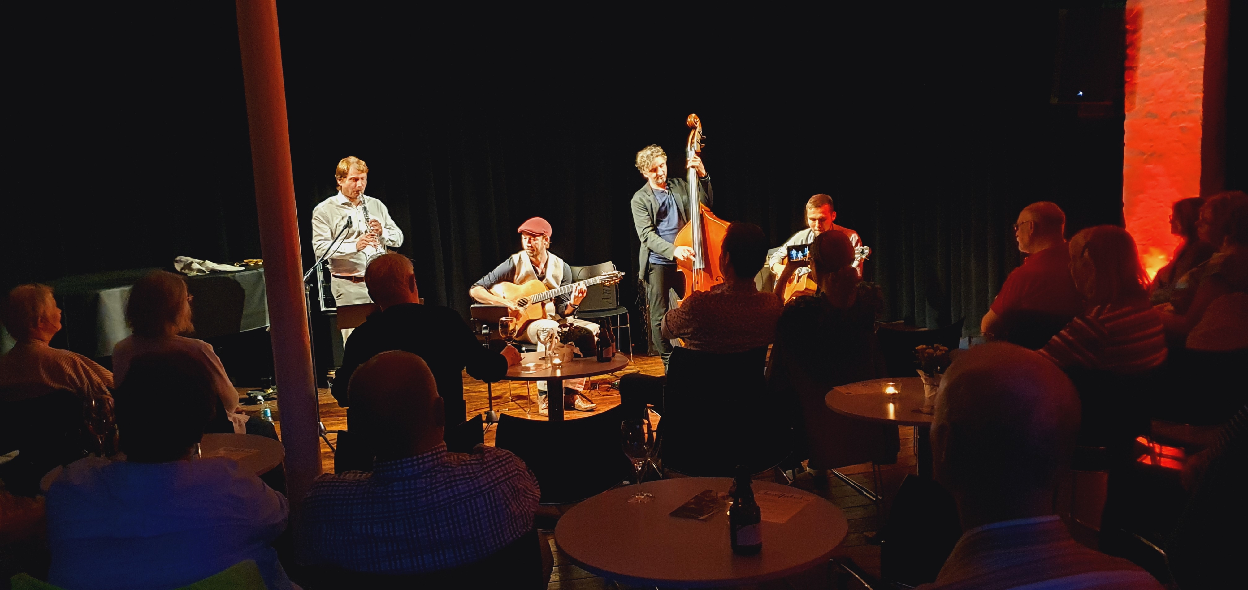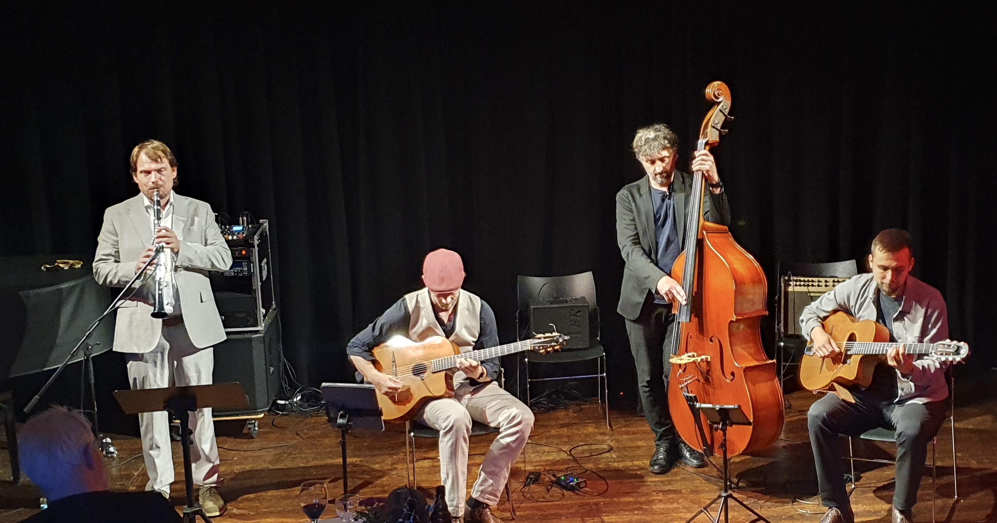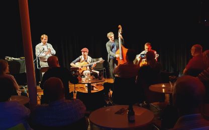 Durch Aufnahme von eigenen Kompositionen sowie Interpretationen von aktuellen Komponisten gelang es den vier Musikanten, Altes mit Neuem zu verbinden und das Publikum in der Bandfabrik mitzunehmen auf eine Reise durch die Cafès der Champs-Élysée der 20er und 30er Jahre bis hin zu den verrauchten Swing Kellern in Berlin des Hier und Jazzt.“