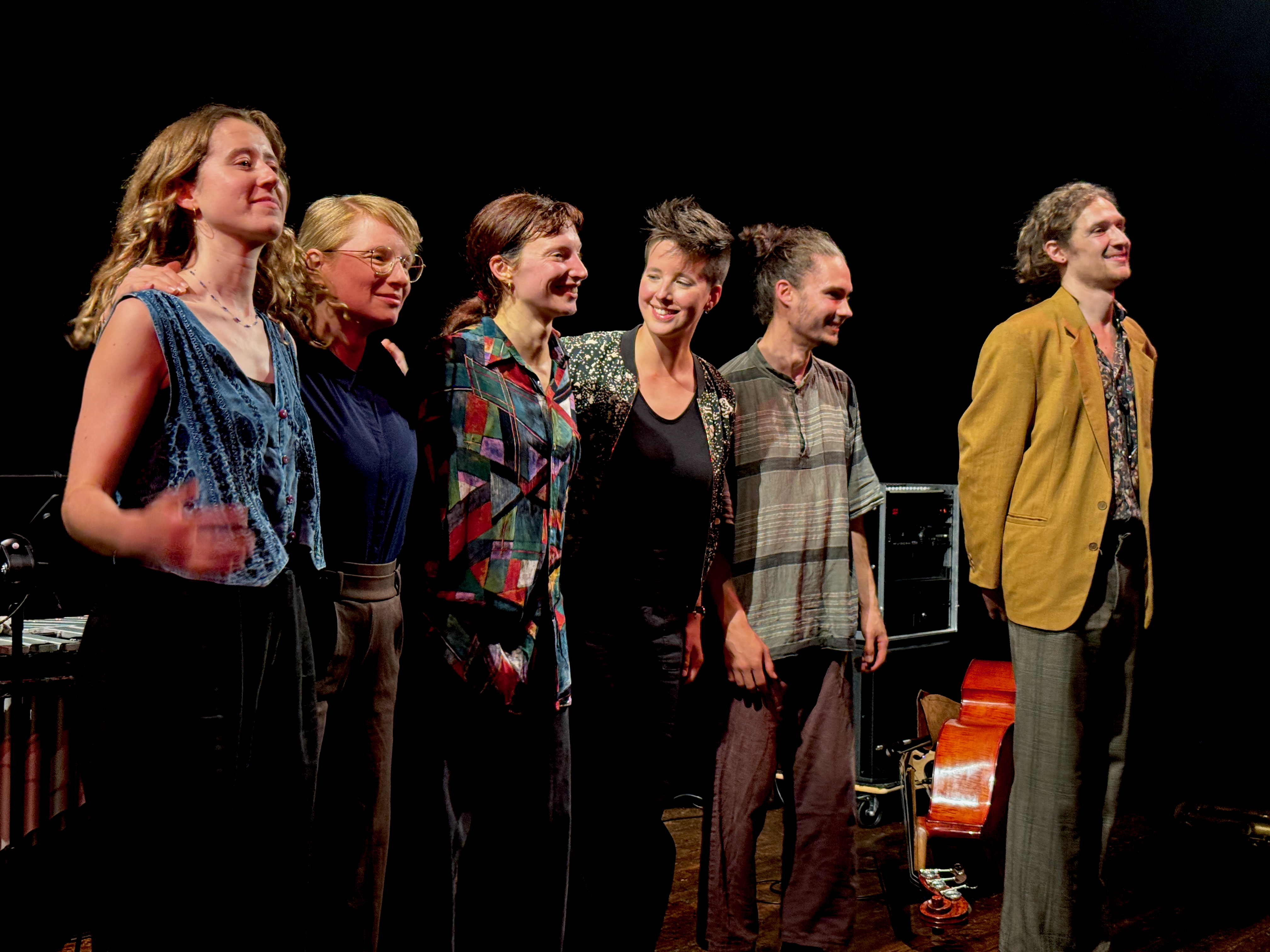 In der gut gefüllten Bandfabrik hat sich das Publikum neugierig eingelassen auf eine ungewöhnliche Klang- und Darstellungswelt voller Überraschungen, Spannung, Harmonie und intensiver Kommunikation. Augen und Ohren wurden positiv gefordert, so dass zur Verarbeitung der gesammelten Eindrücke nach der 1-stündigen Performance das Angebot für Gespräche mit den Künstler*innen intensiv genutzt wurde.