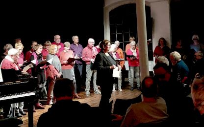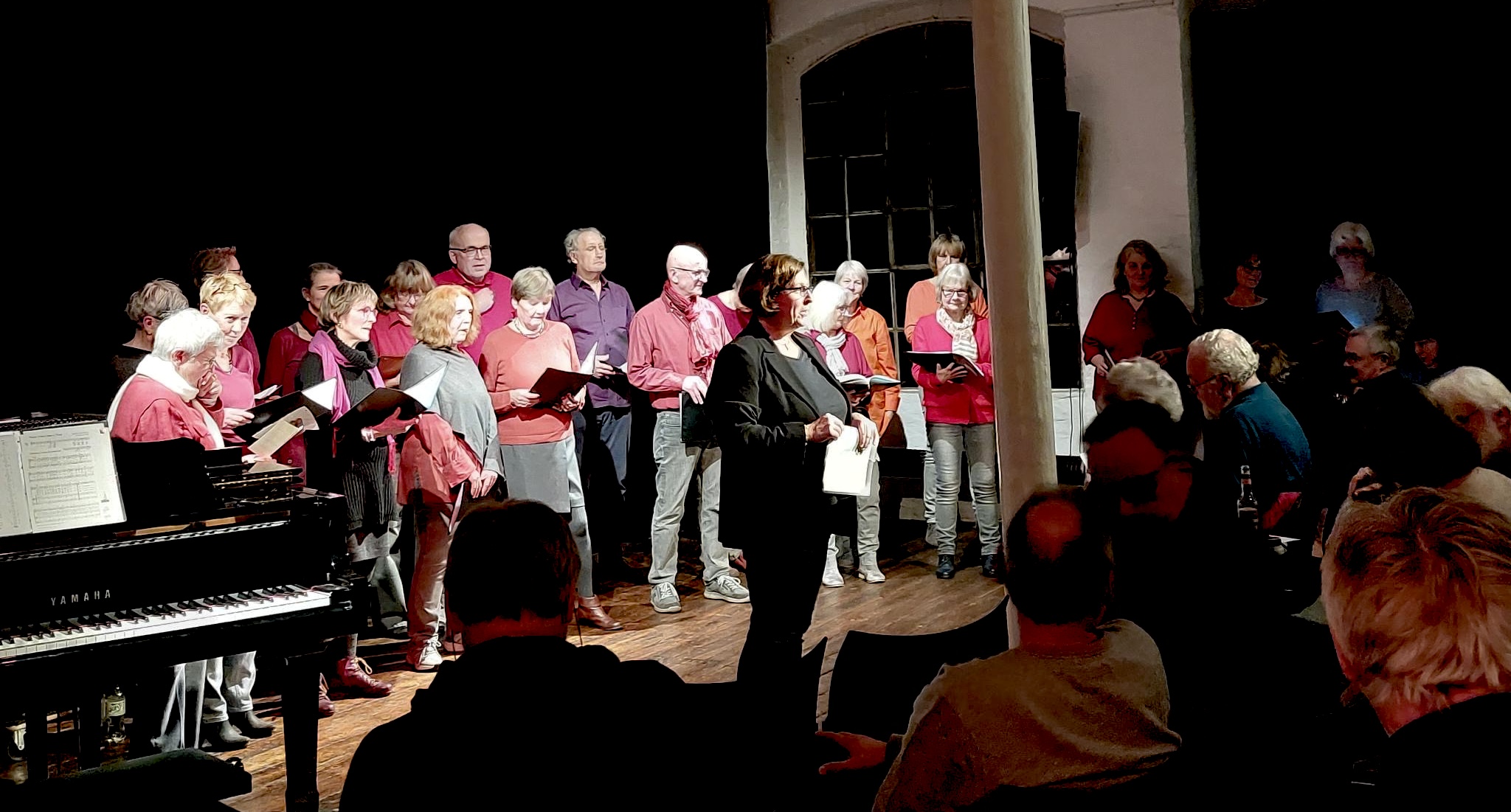 Bereits im vergangenen Juli bereicherte der Chor aus Hatzfeld den Donnerstagabend in der Reihe "Come together – Offenes Haus in der Bandfabrik". Dieses Mal brachten sie eine Mischung aus englischsprachigen Pop- und Rockstücken sowie stimmungsvolle Weihnachtssongs mit in die vollbesetzte Bandfabrik. Die Gäste waren begeistert und sangen aus vollem Herzen mit.