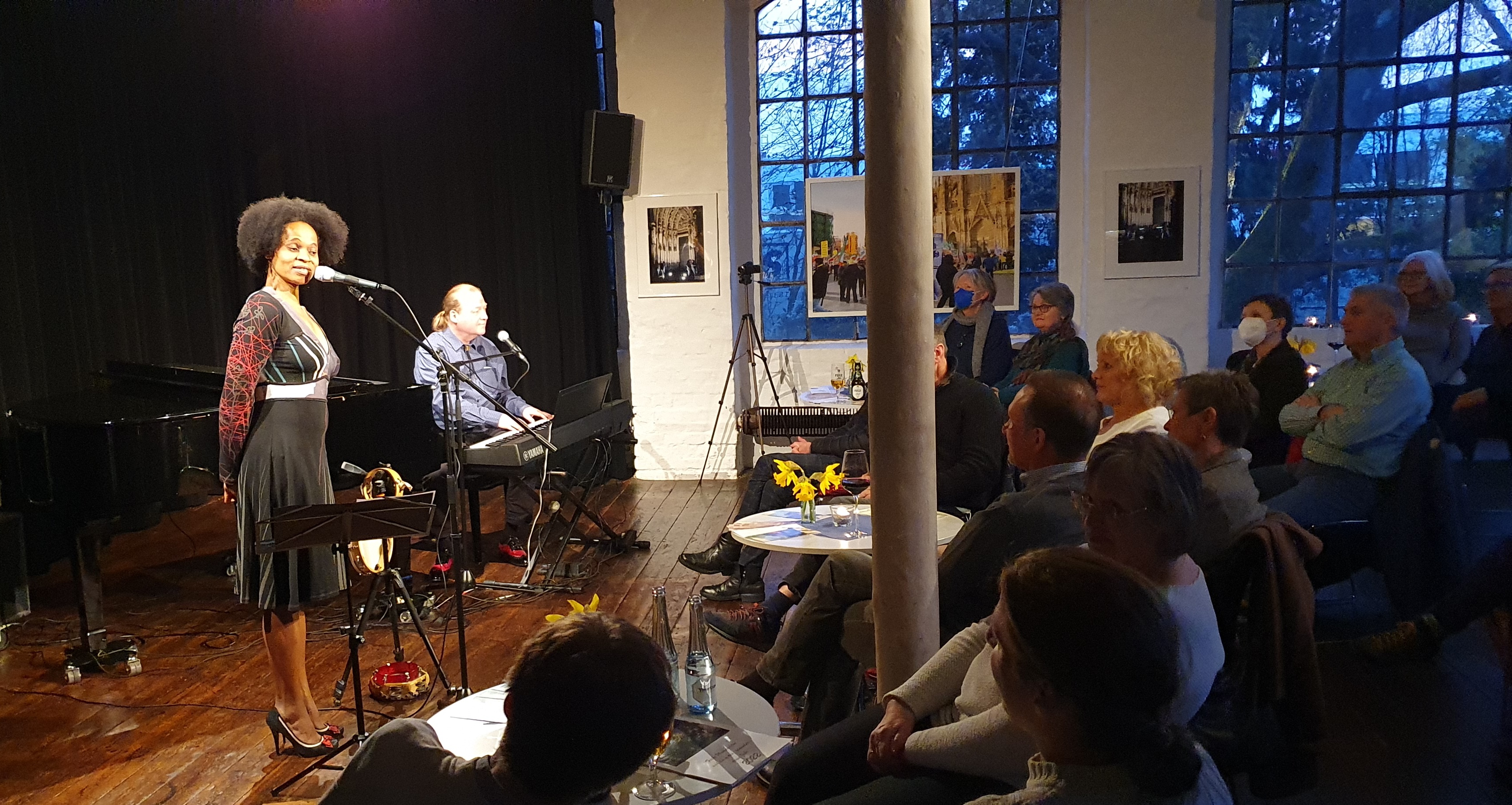 Die brasilianische Sängerin Regina Advento und der Wuppertaler Jazz-Pianist Wolfgang Eichler präsentierten am 09. April 2022 in der Bandfabrik brasilianische bzw. südamerikanische Melodien im Jazz-Lounge-Stil. Zu hören sind auch Latin-Jazz-Kompositionen von Eichler.