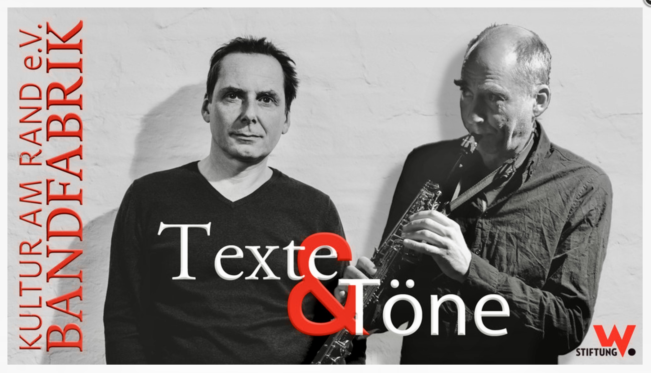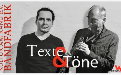 Das Alleinstellungsmerkmal der Reihe „Texte & Töne“, die sich in der Bandfabrik etabliert hat: Es werden höchst aktuelle Texte gelesen, die eine literarische und zugleich politische Bedeutung haben. Manchmal sind es Kommentare journalistischer Beobachter*innen zu gegenwärtigen Entwicklungen. Manchmal Karikaturen oder literarische Skizzen. Die Rezitationen von Olaf Reitz (Schauspieler, Sprecher, Performer) und die Improvisationen Andre Enthöfer (Klarinette, Saxophon) greifen auf eine Weise ineinander, die die Grenzen zwischen Alltag, Realität und Kunst verschwimmen lassen.